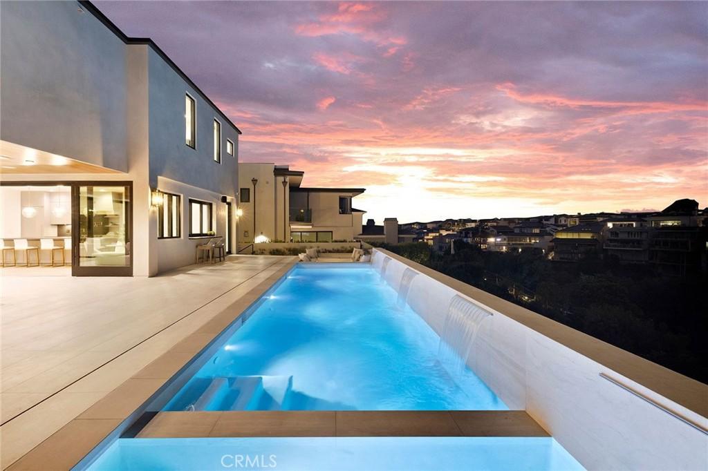 Brand new and never lived in, this chic contemporary home offers an abundance of modern luxury and cutting-edge technology in a scenic Corona del Mar setting just moments from the beach. Perched on the edge of peaceful canyon in Shore Cliffs, the multi-level design by Mark Teale at Teale Architecture offers 5 ensuite bedrooms, 5 baths, an office with built-ins, a workout room, and a bonus room, lending added comfort and versatility in approx. 5,702 s.f. The main level is ideal for entertaining, with a fireplace-warmed great room opening to multiple sitting and dining areas, and a sleek kitchen with oversized double-waterfall island, a butler’s kitchen, a temperature-controlled wine cellar with 1/2"-thick Starphire glass, Sub-Zero, Wolf and True appliances, and a L’Atelier Paris custom-color Design 71 range with hood. High ceilings and large windows create an open vibe throughout the residence, which is highlighted by a pivoting entry door, an elevator, floating staircase, wide-plank wood flooring, and artistic use of wood, stone and concrete. Motorized pocket doors open the great room to a heated loggia with fireplace, and a backyard with pool, spa, and sunken conversation area with fire pit. Ocean views grace three of the bedrooms, and the primary suite reveals a sitting area with fireplace, 2 walk-in closets with illuminated built-in cabinetry and shelving, a stand-alone tub and a view balcony. A rooftop patio offers 360-degree ocean, neighborhood and city-light views.